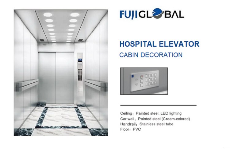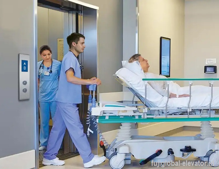 Lift pasien merk FUJI GLOBAL dirancang untuk penggunaan intensif di lingkungan medis.